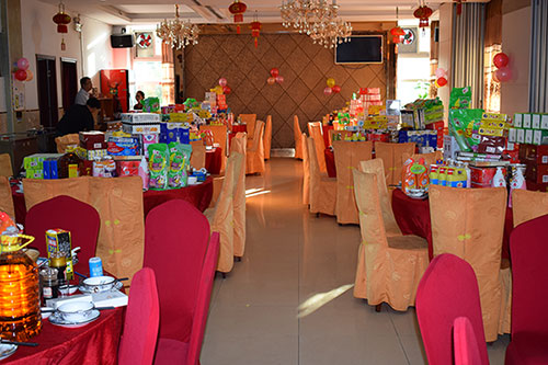 進(jìn)入現(xiàn)場(chǎng)琳瑯滿目的博餅禮品引人注目