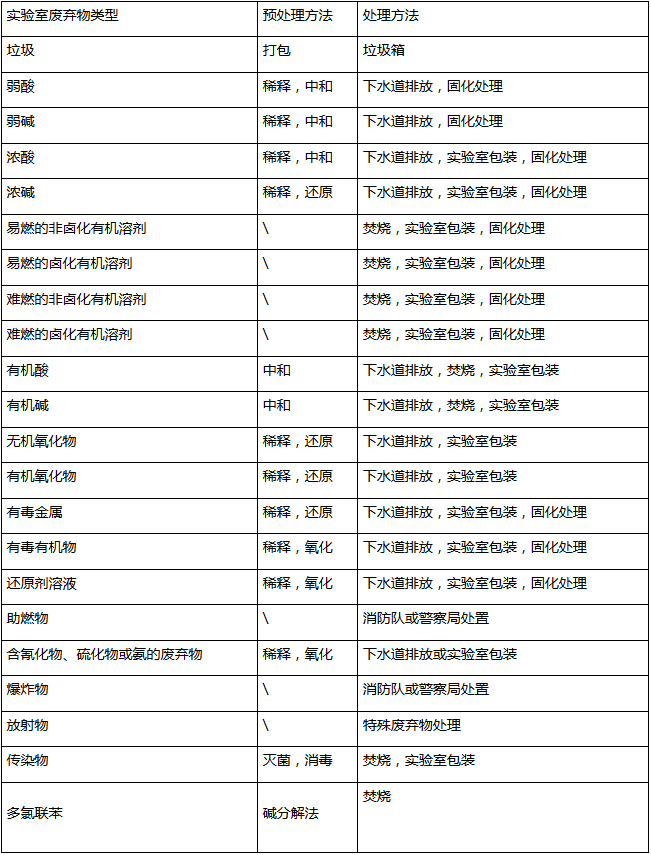 實驗室常見廢棄物基本處理方法