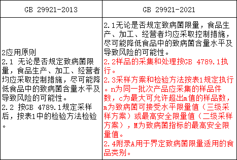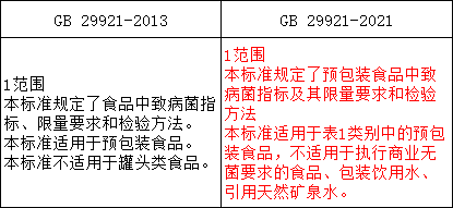 GB 29921-2021《食品安全國家標(biāo)準(zhǔn) 預(yù)包裝食品中致病菌限量》 新舊對照